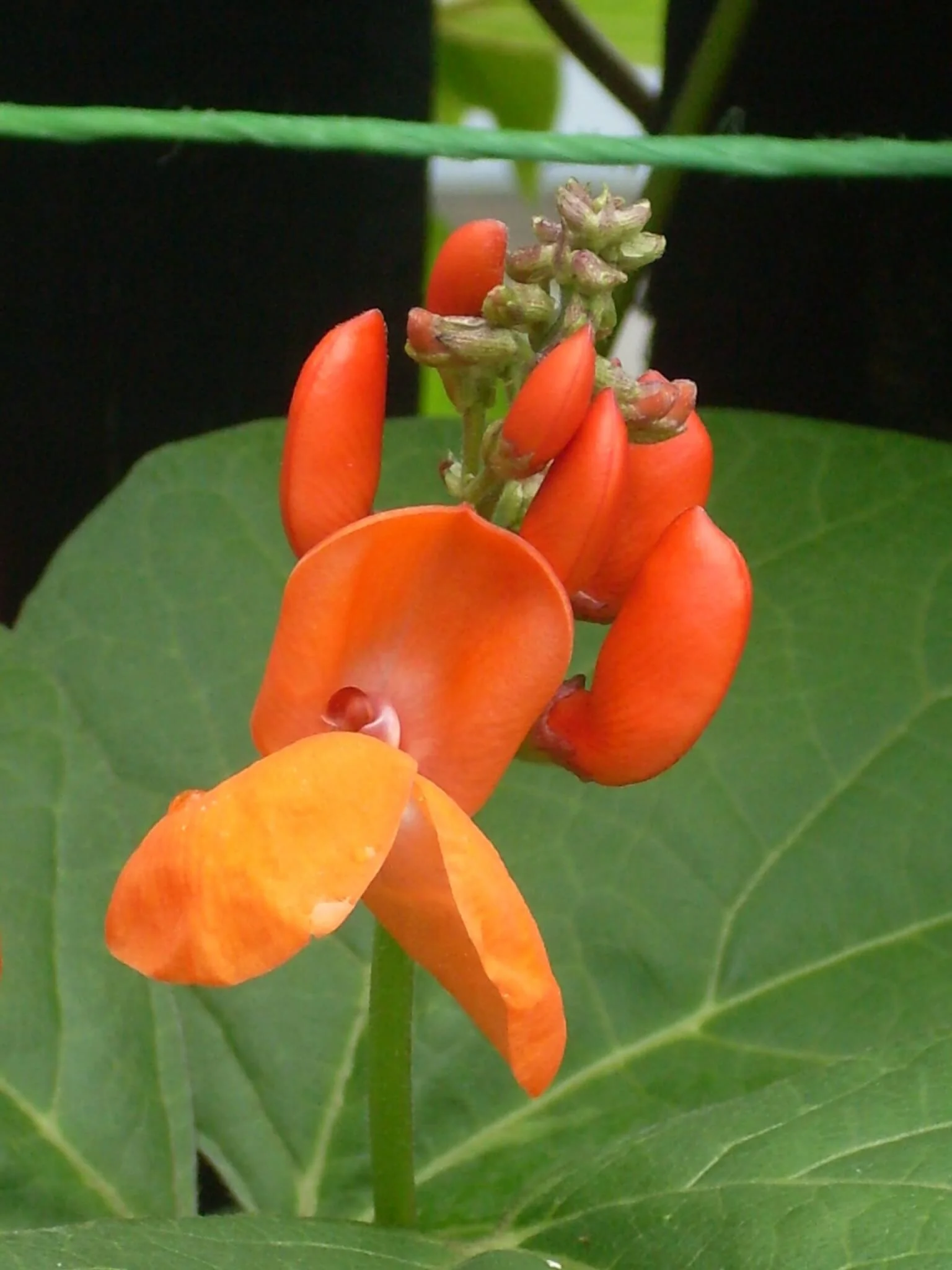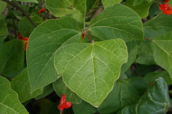 This plant has compound foliage with broad oval to heart-shaped leaflets and scarlet flowers appear in Spring. The flowers are known to attract hummingbirds. It bears green seed pods which is edible whole before they become fibrous, and the seeds can be used fresh or as dried beans.