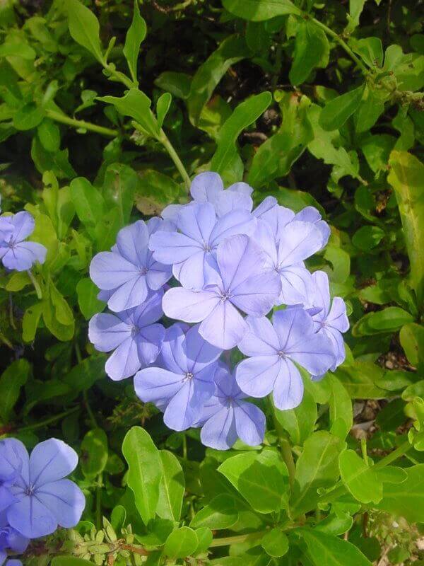 Plumbago has trusses of pale sky blue flowers from early summer to early winter. The foliage are green, thin and oblong. This fast-growing shrub has a spreading growth habit. It attracts butterflies and is good for formal and informal hedge aswell as foundation plantings.