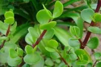 A fine hedging plant, this bush has small, fleshy, round leaves and becomes covered in small pink flowers in early summer. P. afra ‘Prostrata’ and ‘Green Carpet’ are both low growing and make an excellent ground cover in dry areas. Also available in a variegated form. In some areas, spekboom is used for fodder during droughts.