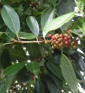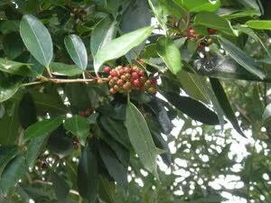 A large, evergreen tree with glossy, dark green foliage. It bears small white flowers in summer followed by red berries in autumn, which attract birds. Relatively fast growing and excellent for damp areas or near water.