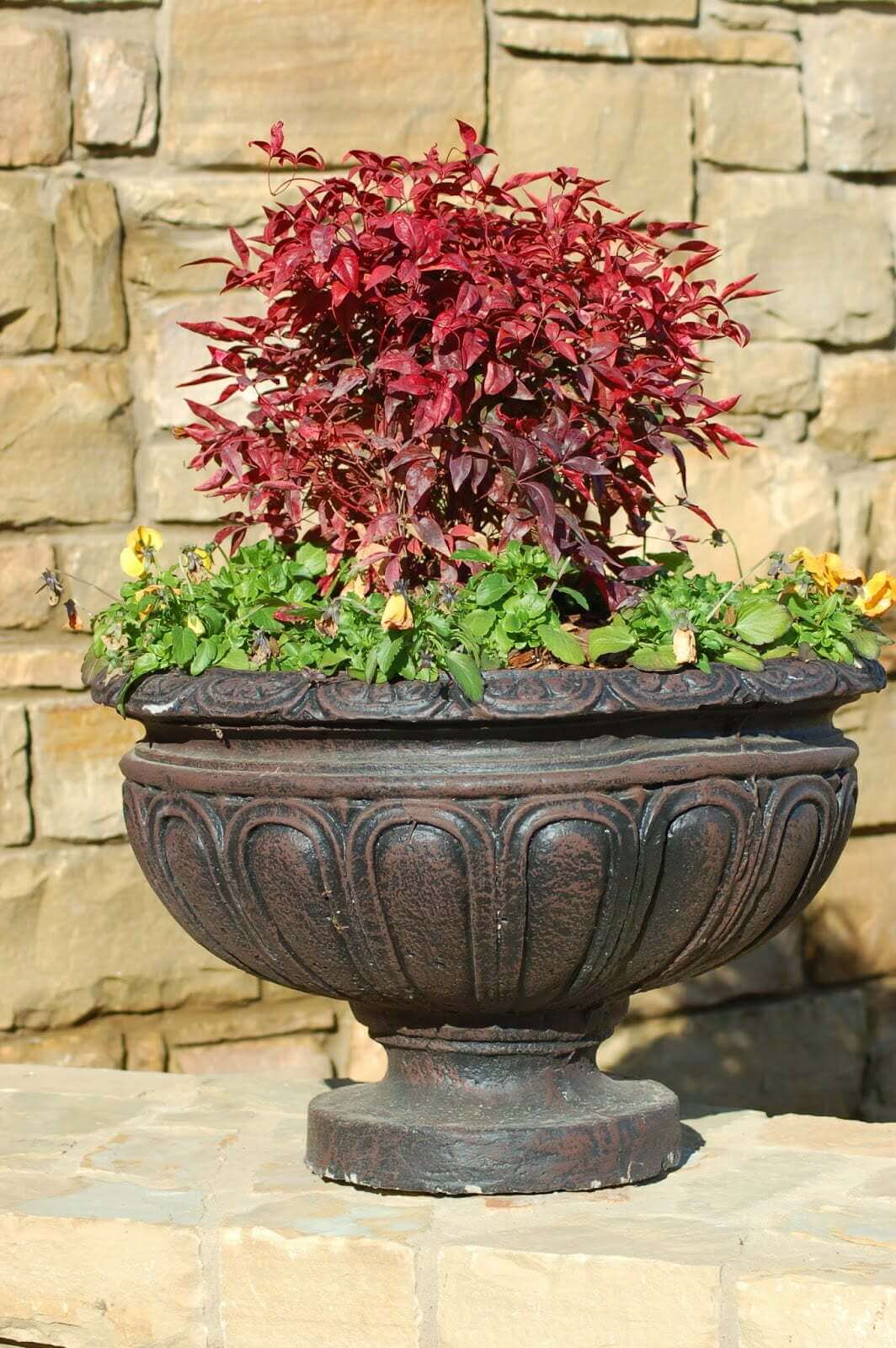 The size of the pot or container should be relevant to the site, and the size of the plant should be relevant to the pot or container. A general rule of thumb is to use plants twice the height of the pot or container and one and a half times as wide as the container. In containers with mixed plantings, it is best to have one taller plant known as the “thriller”, one slightly lower growing plant such as a groundcover or low growing perennial which is known as the “filler” and one trailing or creeping plant which is known as the “spiller”. These are normally arranged from the back to the front of the container starting with the “thriller” and are known as mini or container gardens.