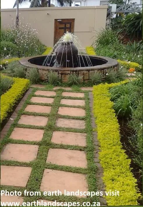 Terraces with rectangular beds and formal plantings work well on steeply sloping sites, as do bold groupings of shrubbery and ground covers such as indigenous plumbago, dwarf bush bougainvilleas, agapanthus, day lilies and aloes, all intermingled as space allows.