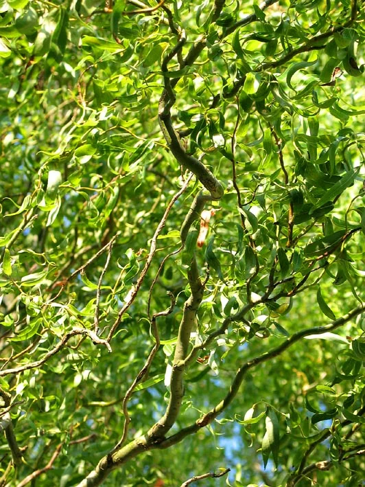 Salix rubens 'Basfordiana' (The Basford Willow) The Basford Willow is a medium sized fully hardy deciduous tree/shrub from France. It grows well in semi-shade and direct sun, and prefers medium levels of water. It has a high flood tolerance. It is grown for the brilliant golden yellow to orange colour of its stems which is best seen in winter. It can be hard pruned and the twigs used for basket making. This is a rounded tree or shrub. It has a fast rate of growth and has a multiple stem growth form, and has an ultimate height of 4- 5m and spread of 3m. It can take 6-10 years to reach its ultimate height. The leaves are green in summer and green and yellow in autumn. They are lanceolate in shape. It is best used as borders, on the waterside and wetland or bog areas. Salix purpurea “Purple Haze” Purple Haze is a deciduous, large shrub or small tree (3-4m) with a rounded, dense shape composed of thin branches and has a fine texture. It boasts a fast growth rate and will easily flutter and ripple in the breezes as the stems sway in unison. It is native to Europe, northern Africa and to central Asia and Japan. Foliage is simple, and oblanceolate. The leaf tips are serrate and coloured dark blue-green with silvery-blue undersides in summer. In autumn, leaves turn purplish black. It has attractive male flowers. The bark has a purplish stem colour on upper side of stem, green stem colour on underside of stem. The buds are small and purplish with very thin stems that turn a light gray when mature. It is fast growing, easily transplanted form containers, prefers moist soil, or to grow along water sources. Full sun or partial shade suits it and it is very adaptable to poor soils, soils of various pH, dry soils, and drought. Landscapers can use it for wet sites, colour and fine texture and to stabilize stream banks. When this shrub gets too large for its allocated space or simply looks untidy, it can subjected to rejuvenation pruning a short distance above the ground, preferably anytime from late Winter to mid-Summer. The new shoots and suckers will quickly sprout and soon overwhelm the stumps in a mass of vigorous stems and foliage. It can also be used as specimens, group planting, or mass plantings and highly complementary to ornamental grasses, as an informal hedge, as a deciduous screen, on embankments for erosion control (in dry or wet soils), or as a solitary shrub whose fine texture and bicolour effect in the breeze. It is sought after for its harvested young stems to be used in basket weaving. Salix caprea ‘Pussy Willow’ / ‘Goats Willow’ Salix caprea is a deciduous tree growing from 2m- 8m (max), at a fast rate. It is hardy and is not frost tender. The plant prefers light (sandy), medium (loamy) and heavy (clay) soils and can grow in heavy clay soil. It can grow in semi-shade (light woodland) or full sun. The plant can tolerate maritime exposure. It can even tolerate atmospheric pollution! It is first flowering in spring and the stems are ideal for flower arranging then. The stems are very flexible and can be used in basket making. The plant is usually coppiced annually when grown for basket making, though it is possible to coppice it every two years if thick poles are required as uprights. The bark is tough and flexible. It is used as a substitute for leather. The plant is fast growing and tolerant of maritime exposure, it can be used as a windbreak hedge and shelterbelt. Wood is soft, elastic and easily split. Used for baskets, rugs etc. A good quality charcoal is made from the wood too! Salix matsudana ‘Tortuosa’ (Corkscrew Willow) Salix ‘Tortuosa’ is a compact, deciduous, flowering, rounded tree with an architectural form. It is a small tree (4 to 6m height) with yellow flowers (winter) and medium green foliage. It is also frost hardy and fast growing. This shrubby willow flourishes on moist / wet soils of any type in part / full sun. It will require pruning to produce distinctive twisted growth. Note that it should be planted well away from any house. Attractive autumn colour. Ornamental winter bark. All round tough plant suitable for problem areas. Architectural plant – ideal as a ‘stand out’ plant. Attractive form or foliage for all year interest. Tolerates full sun and sandy, drought-prone soils. Tolerates cold exposed locations. Tolerates heavy clay soils. It produces winter flowers.  Salix mucronata ‘Cape Willow’, ‘Kaapse Wilger’ This graceful semi-deciduous to evergreen tree grows up to 15m with an open crown and slightly drooping branches. Older trees have fissured, brown bark, while younger trees have smooth, green-red bark. The leaves are simple, alternate and taper to both ends. They are glossy, dark green above and light green below. Flowers appear in short spikes with males and females on separate trees. The male spikes are dense, yellowish and can be up to 50mm in length. The greenish coloured female spikes are shorter and thicker. The Cape willow may be found growing along streams and riverbanks in much of the south east, south, and south west Cape, specifically along the Kei and Bashee Rivers, the Sundays River, the Fish River, the Breede River and the Groot and Klein Berg rivers. The tree can withstand both frost and drought. Young tree branches are used to make baskets and the wood is carved to make household, as well as decorative items. |