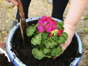 Water plants before transplanting them to a container, this minimises stress on the plant during transplanting.