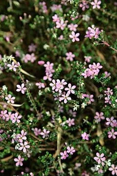 A dense, spreading shrub from the Western Cape coastal fynbos. It has small, aromatic leaves and bears pink, star-shaped flowers from December to April. It makes a useful ground cover and is good in containers, rockeries or as a general garden plant