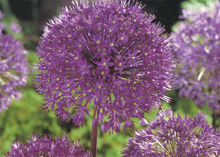 Alliums actually come in oval, spherical, or globular flower shapes, blooming in magnificent colors atop tall stems.