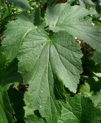 It has deeply lobed, mid-green leaves.