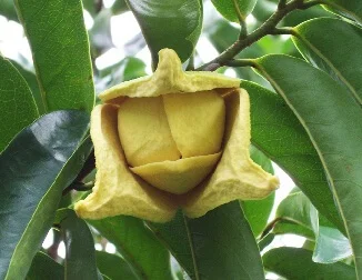 This tree bears large yellow to a yellowish green coloured solitary flowers.