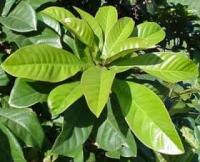 Barringtonia racemosa has large, shiny, dark green leaves.