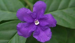 | Foliage | Brunfelsia grandiflora bears leathery pointed foliage, narrow to oval, dark green above. |