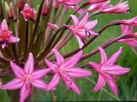 A deciduous, summer-flowering bulb from the grasslands of the eastern parts of South Africa. B. grandiflora is similar, but bigger. Large umbels of pink flowers appear during January and February. Large leaves lie flat on the ground. Dead umbels break away from the stem to tumble around the veld spreading their seed; they make rustic decorations.