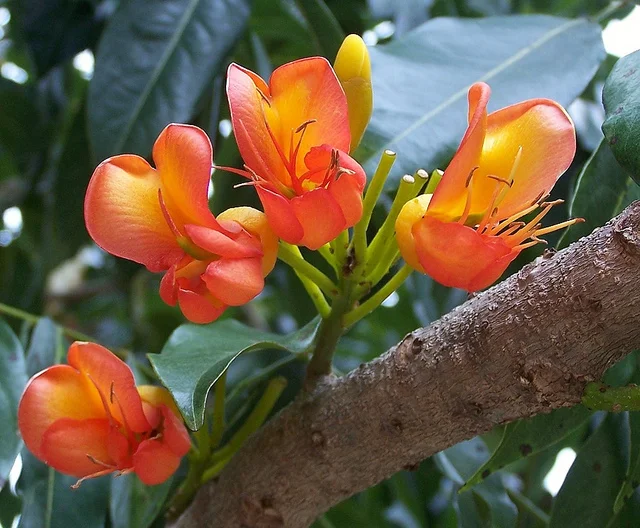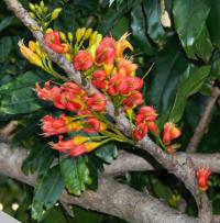 | Flowers | This tree bears waxy, orange-pink flowers on old wood. |