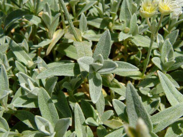Cascading over banks or walls and even spreading on the level, this carpeting plant produces masses of white, star-like flowers during Spring and Summer which show up beautifully against its silver-grey foliage. Spreads fairly rapidly.