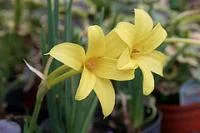 These are summer-growing, with scented, trumpet-shaped, bright yellow flowers that appear before the foliage does. Plant in early spring. They make good container plants.