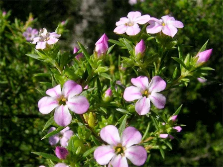 Small star shaped flowers with rounded petals coloured pink and rose-tinted during late winter and spring these plants sometimes also repeat flowering in summer.