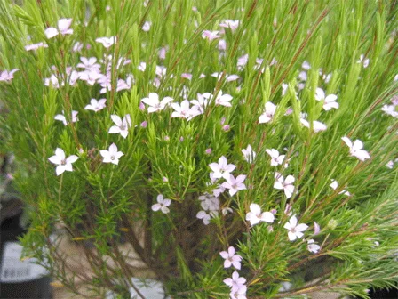 An erecte dense well foliaged and slender branched shrub with aromatic foliage. Coleonema pulchellum bears long-lasting, small star-shaped and rose-tinted flowers in Spring.