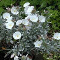 The Convolvulus cneorum has white- or pink-flushed morning glory-like flowers in summer.