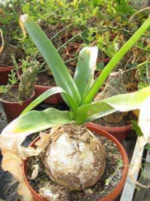 This plant bears large strap-like leaves.