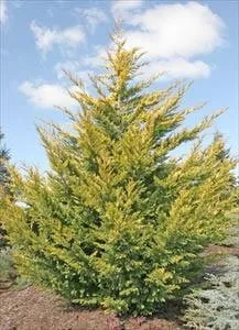 This tree has lovely yellow foliage, this variety does not grow quite as tall as its green relation. It can be trimmed to size and makes an very effective hedge for noise screening.