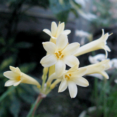 | Flowers | May June July This plant has trumpet shaped flowers in shades of white, yellow and pink. |