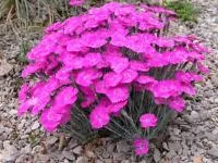 These popular, beautiful plants do well at the front of a border, in rose beds and rock gardens, provided the soil is not too rich. They form dense tufts of pointed, grey-green leaves, while the fragrant pink flowers make charming miniature arrangements. Hybrids come in shades from dark pink to white, with single and double flowers.