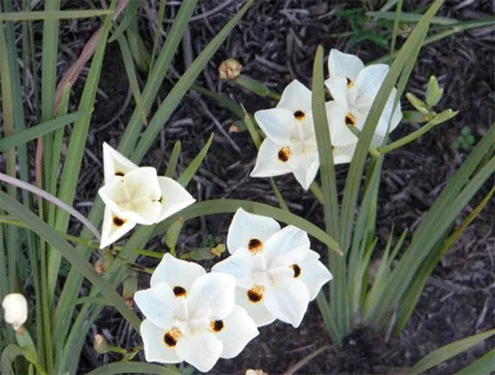 January February September October November December The alternating lemon yellow petals of these plants flowers are blotched with contrasting brown at the base. The flowers of this Dietes appear in