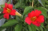 | Flowers | This beautiful creeper remains popular because it grows quickly and produces masses of unusual, long, trumpet-shaped, deep-yellow flowers with a scarlet mouth, |