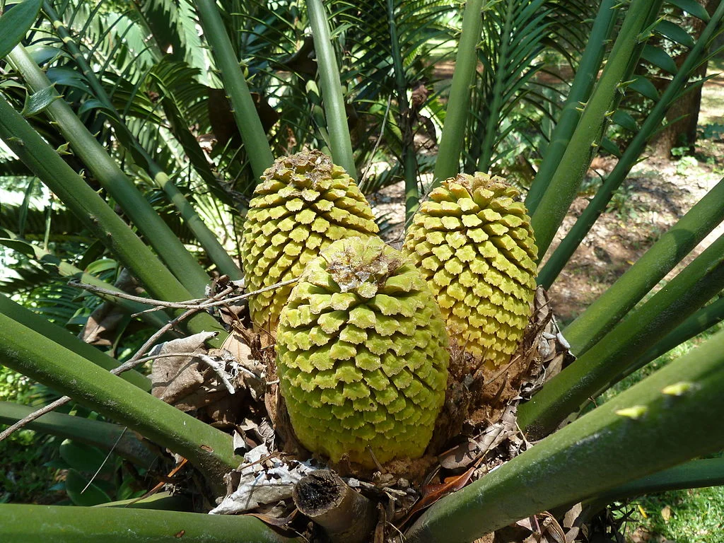 It has exceptionally long leaves, with leaflets 150–250mm long. Leaves are toothed, and more prominent on young plants. Bears up to five golden-yellow cones. Needs a rich, moist, well-drained soil. Relatively fast growing.