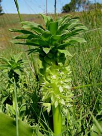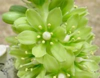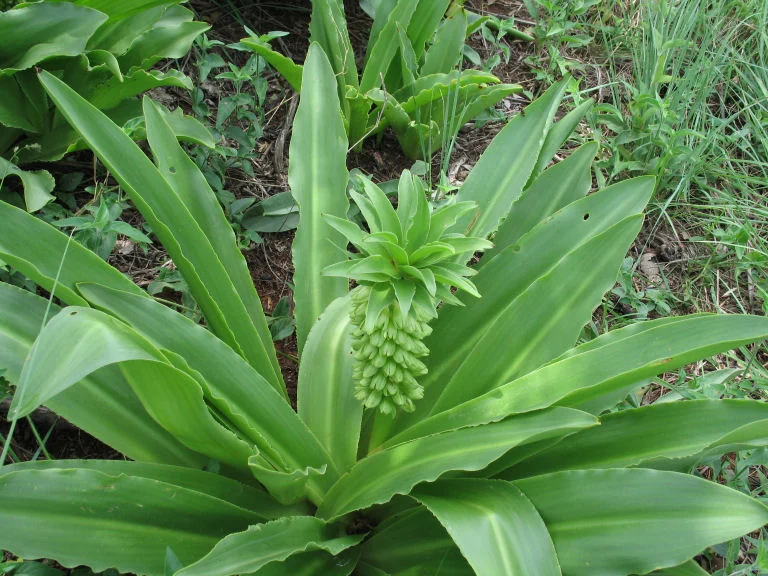 January February October November December The Eucomis autumnalis has flowers which resemble a pineapple.Spikes of greenish, white or yellow flowers are borne in summer.