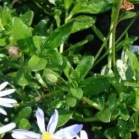 A popular bushy shrub with many varieties. Felicia amelloides has sky-blue flowers with bright yellow centres. It flowers all year round, but mainly in spring, and tolerates semi-shade. Also available in a white form. Low-growing F. amoena ‘Variegata’ has green-and-yellow variegated leaves and small blue flowers all year. F. bergiana (dwarf felicia) is a compact, low-growing, dark green shrub, with small blue, daisy-like flowers all year. F. enchinatais a small, fine-leafed shrub with blue flowers all year. F. erigeroides (wild Michaelmas daisy) is small, with pink flowers all year.
