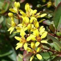 This evergreen shrub bears clusters of yellow, star-shaped flowers throughout most of the year. It grows well in warm, protected gardens.