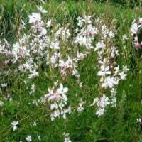 This gaura bears masses of pure-white, butterfly-like flowers from spring to autumn. Cut back in autumn. Drought resistant. Good cut flower.