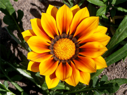 | Recommended varieties | ‘Ilanga’, a variegated clump-forming gazania with bright green and creamy-yellow leaves and orange-red flowers; ‘Daybreak Bronze’, dark brown flowers; ‘Daybreak Bright Orange’, large orange flowers; ‘Daybreak Pink’, large pink flowers; ‘Daybreak Red Stripe’, large yellow-and-red-striped flowers; ‘Daybreak Yellow’, large yellow flowers; ‘Moonglow’, double, bright yellow flowers; ‘New Moon’, creamy-white with a dark yellow centre; ‘Pink’, grey foliage with pink flowers; ‘Raspberry’, green leaves and small light red flowers; ‘Tangerine Tango’, green foliage with double, orange-yellow flowers. Gazania splendens (G. rigens) ‘Talent’ has grey- green foliage with multicoloured single flowers. The low-growing G. splendens ‘Variegata’ has yellow-green variegated foliage and dark yellow flowers all year. G. uniflora is fast growing with grey foliage and yellow flowers all year.  |