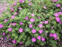 This geranium grows 300mm and forms a bushy, flat ground cover with masses of magenta-pink flowers in summer; it is also available in a white form.