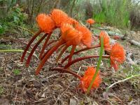 Large bulbs, either summer or winter flowering, depending on the species. Colours range from white and pink to orange and the flowers appear as a congested inflorescence before the foliage appears. They resent disturbance (propagate by seed) and require a fairly long, dry dormancy period. Some Haemanthus species have been reclassified as Scadoxus.
