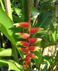 This helinconia bears drooping inflorescence and flowers shaded from red to yellow.