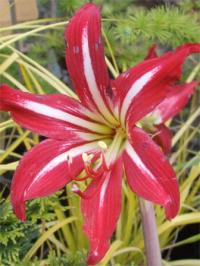 Thi well-known summer-growing bulb has trumpetshaped, single and double flowers that come in a range of colours, including white, rose, pink, red, salmon, orange, and red with white stripes.