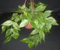 This evergreen creeper has fleshy leaves and umbels of the most extraordinary, small, starshaped,waxy flowers, which look like small parachutes hanging from its stems. There is also an attractive variegated form, its foliage marbled white and green and tinged with pink. It is popular as a verandah plant. as a veranda plant.