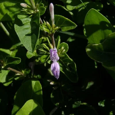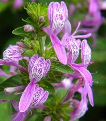 This plant bears small flowers with showy bracts in loose spikes, in shades of mauve, white and purple in Autumn to Spring.