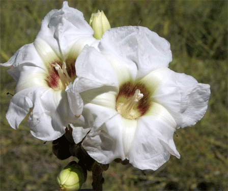 This weeping tree bears white convolvulus-like flowers in late winter, when it loses all its leaves. It is a very attractive tree for the large garden, and is good for growing in warmer areas.