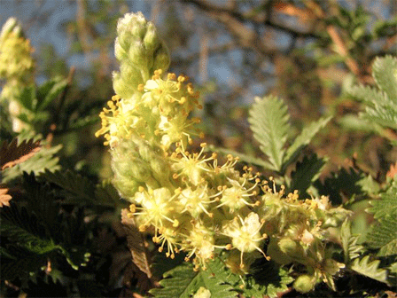 Leucosidea sericea is a good plant for an indigenous garden, because it can be versatile. It bears dark green foliage with silver hairs. The flowers are borne in spring, star shaped and yellow-green with nut-like fruits.