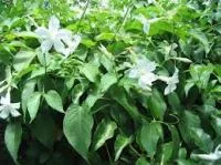 This half-hardy creeper bears masses of scented white flowers in clusters throughout the summer. It has attractive heart-shaped leaves, making it useful for flower arrangements.