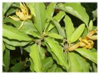 An attractive tree with an upright growth habit and large, pale green leaves. It bears strange orange yellow flowers with a sweet scent. Suitable for small gardens.