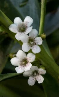 Extremely fast-growing evergreen shrub with unusual pale green foliage. It can grow into a small tree, so needs regular pruning to keep it compact. M. nanum is a compact dwarf shrub, up to 800mm tall, with lovely autumn foliage.