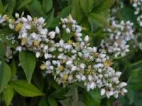 This plant bears sprays of creamy-white flowers.
