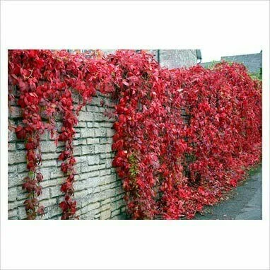 This hardy, self-clinging creeper has distinctive leaves, each with five leaflets, that change from green to red in autumn, making it an attractive wall covering.