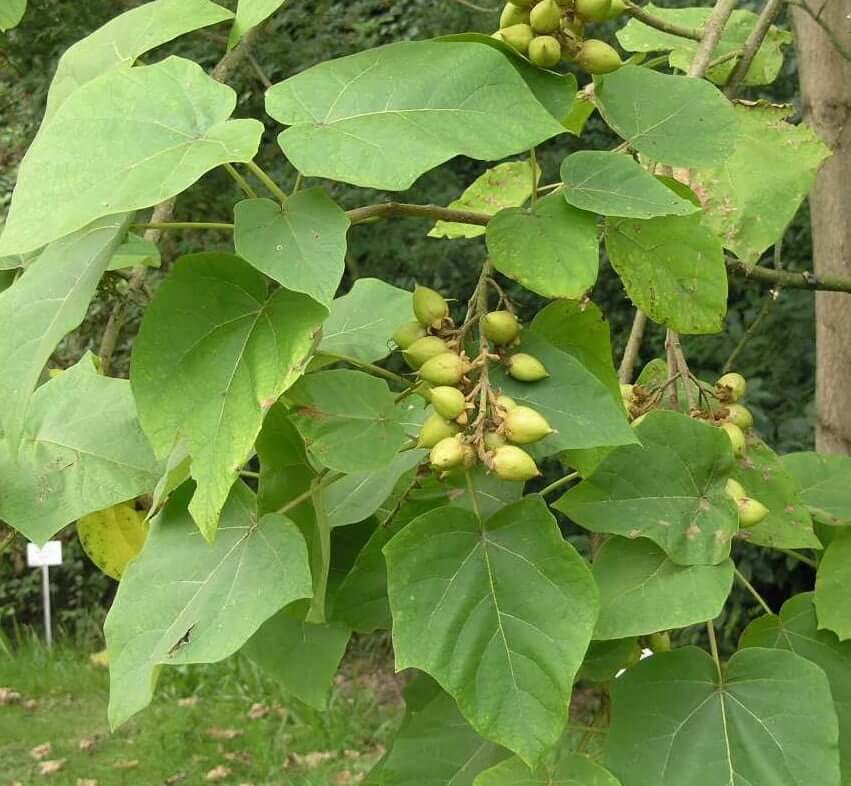 A spreading tree with surface roots. It has large, lobed leaves and bears foxglove-like, fragrant mauve flowers in spring. Both leaves and flowers can be messy. It can be pruned to shrub size. Creates dense shade.
