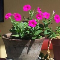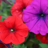 These popular annuals come in a variety of sizes and colours. Flowers are large, funnel-shaped, single or double, some with frilly petals. New varieties offer an ever-increasing range of options for all growing conditions. In general, they are drought and heat tolerant; the hotter the sun, the more colourful the display. Petunias make excellent bedding and container plants.