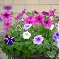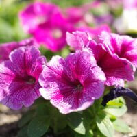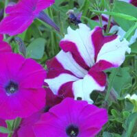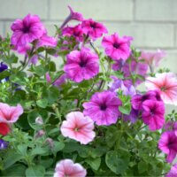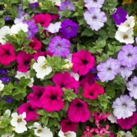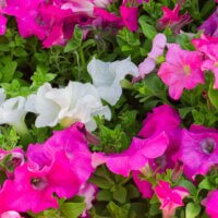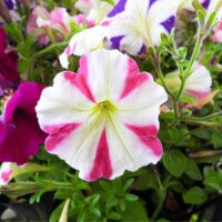 | Recommended varieties | Multifloras produce masses of medium-sized flowers. They are tolerant of strong winds and heavy rain. Popular cultivars include the Carpet™ and Primetime ™ series, the latter being a doubleflowering range. Grandifloras produce many large flowers, but are not as tolerant of adverse weather conditions. Available cultivars are the Supermagic™, Dream™, Ultra™, Daddy™ and Storm™ series, while Supercascades™ are ideal for hanging baskets and containers. Storm™ petunias have been specially cultivated to withstand bad weather. • Floribundas bear lots of large flowers with good weather resistance. Mirage™ is a popular floribunda cultivar. Millifloras are neat, compact plants with masses of small flowers, making them good for pots and containers, as well as bedding plants. Cultivars include the Fantasy™ series. •Supertunias are a new collection of lowgrowing, compact floriferous perennial petunias that are resistant to pests and diseases. Cultivars include Merlot™, Pretty Much Picasso™, Raspberry Blast™ and Vista Bubblegum™. |