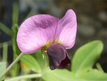 This species had divided foliage, 4-6 opposite leaflets with leafy, rounded stipules and the main axis ending as a tendril.